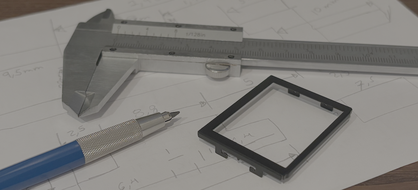 Este es mi primer proyecto hecho en FreeCAD para diseñar un marco de pantalla (bezel) que fija el display a la PCB con el resultado de obtener un módulo firme, lo mande a fabricar en JLCCNC, este video y este otro video me ayudaron mucho a entender como diseñar un sheet metal, la verdad que tarde varias semanas y muchos intentos hasta lograr algo aceptable, al final podía hacer el dibujo con las medidas a memoria.