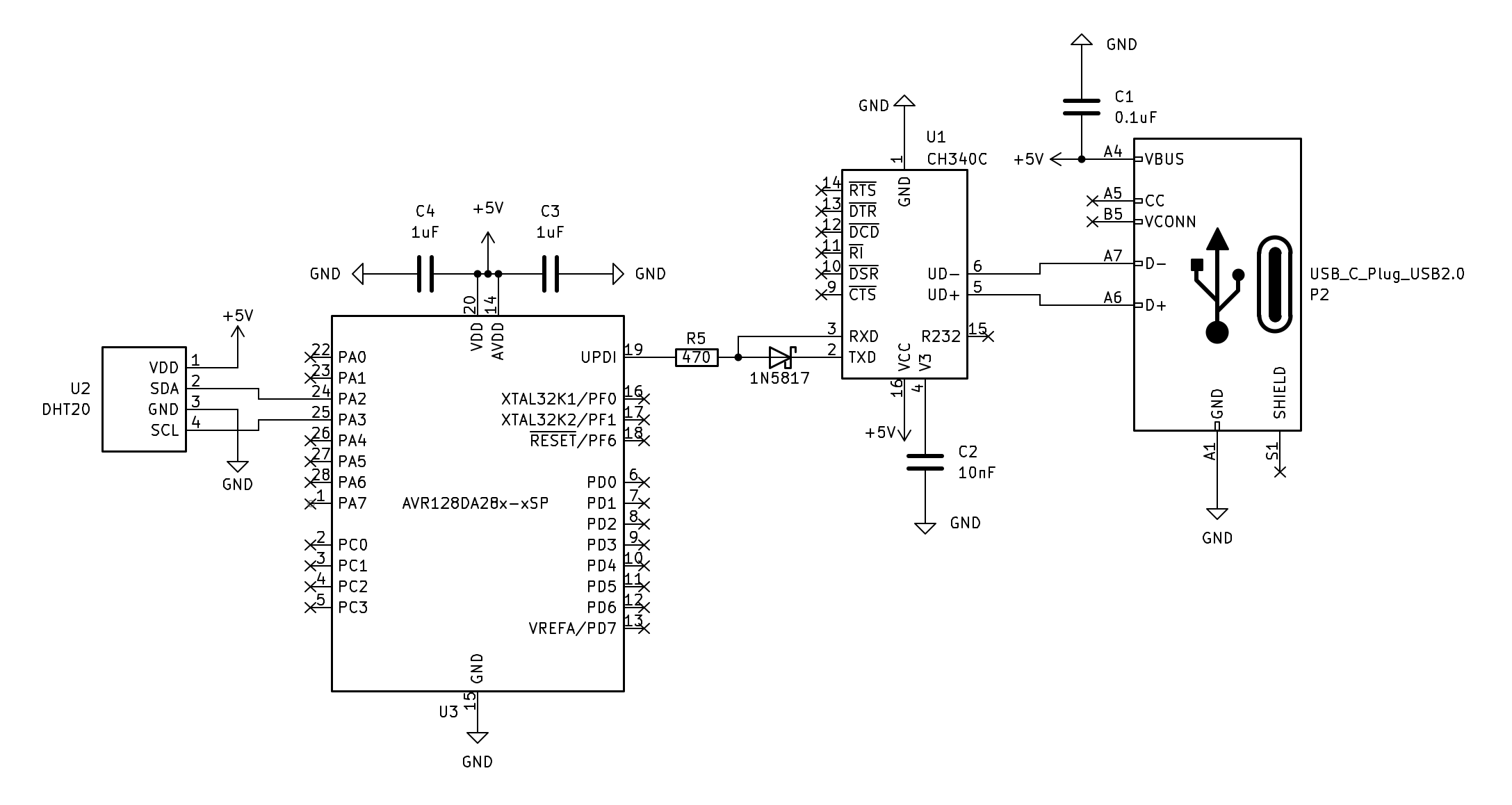 Para este ejemplo vamos a leer los datos del sensor y enviarlos por CDC (Communication Device Class) para poder leerlos desde la terminal usando la tool picocom . El microcontrolador AVR DA tiene varios I2C, pero en el mundo de Microchip no se dice I2C, sino TWI (Two-Wire Interface) , usaremos el TWI0 y la dirección del TWI Slave es 0x38.