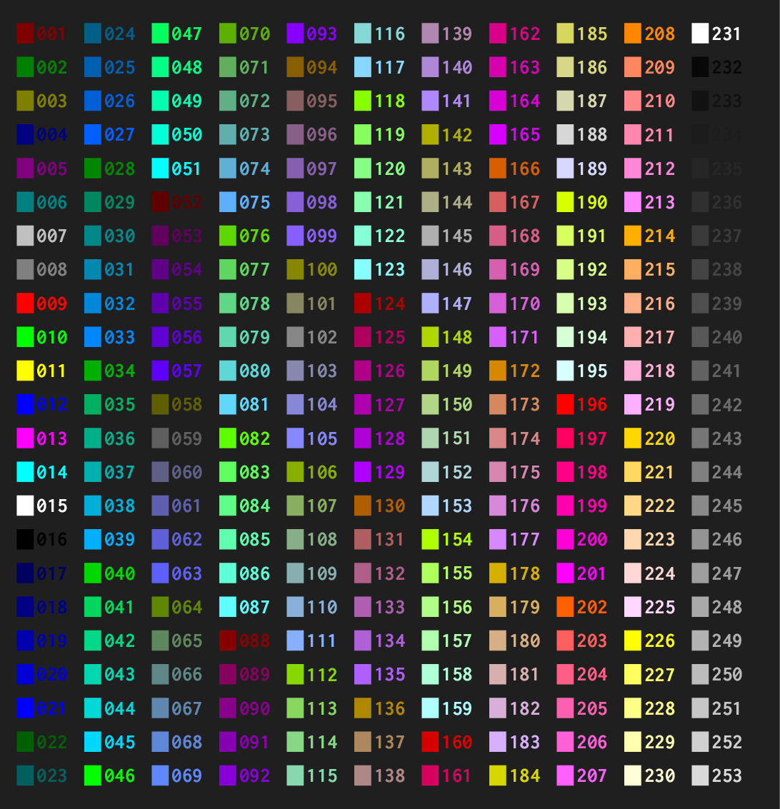 tiene 256 colores a tu disposición, en algunos casos está desactivado, o tiene un número limitado, por otro lado, a lo largo de los años esta forma ha cambiado dependiendo de la tecnología por lo que se deberá revisar la compatibilidad y formas de usarse: